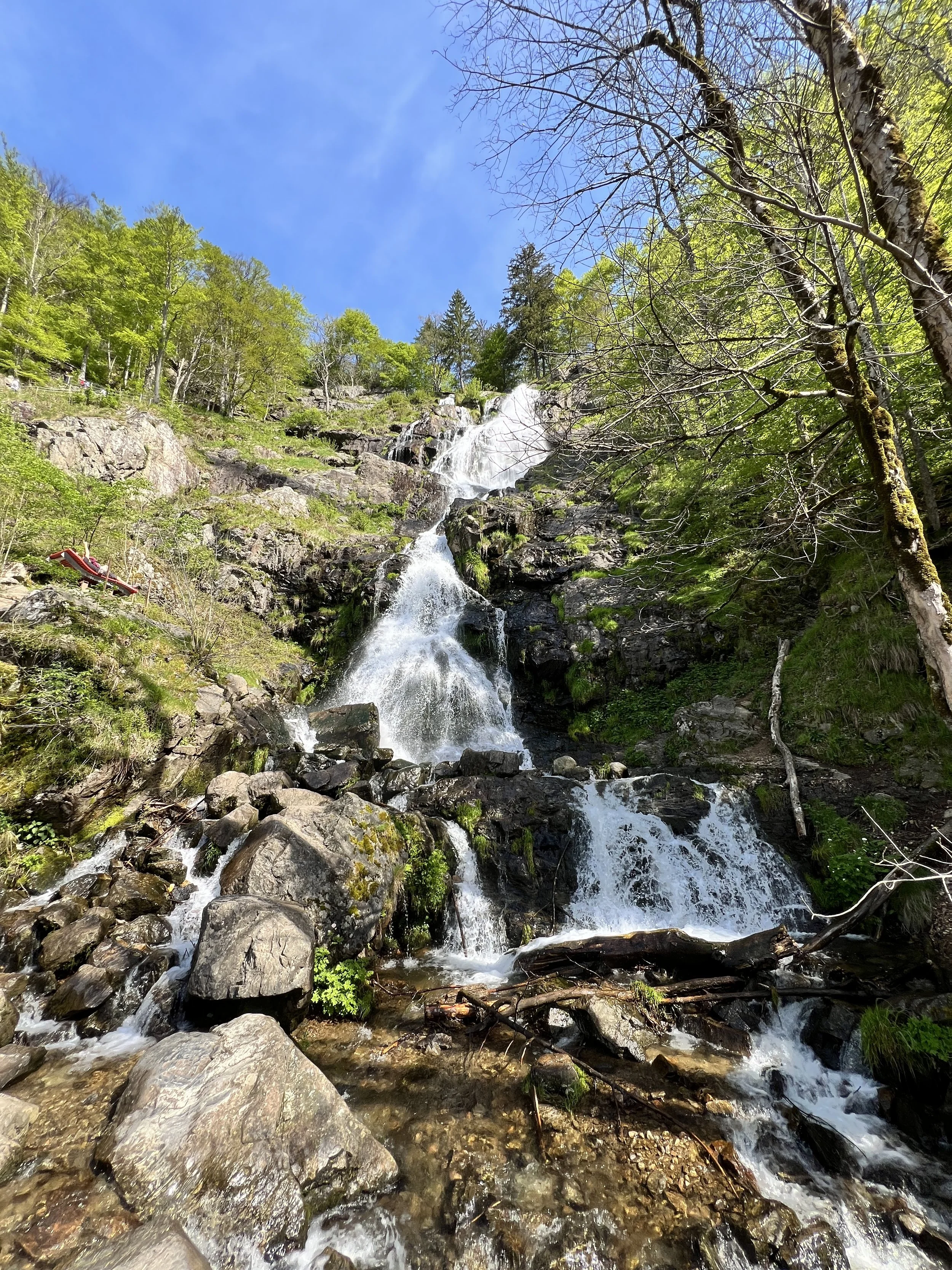 Zo, nu was de vakantie alvast helemaal geslaagd. We besloten nog even te stoppen aan de Todtnau watervallen. Om enkel de watervallen te bezoeken was het €2,5 per persoon. Als je de hoge brug ook wil doen is het €12. Wij deden echter enkel de waterval. En die op zichzelf was op z’n minst indrukwekkend te noemen.